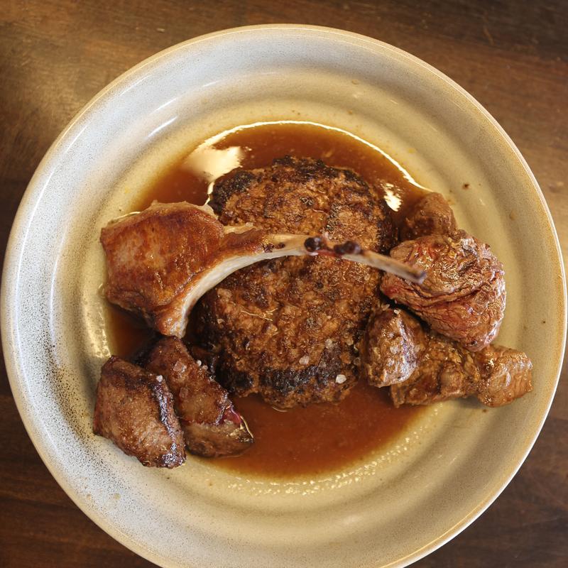 Brandt Beef Ancestral Blend Beef Patty, Lamb Chop, Liver Medallions, Filet Brochettes, Natural Bone Broth.